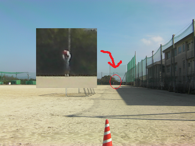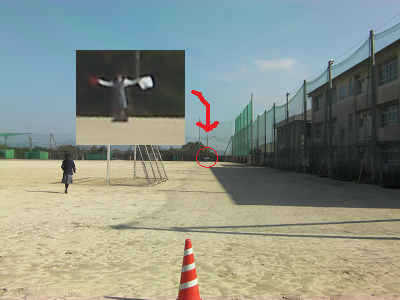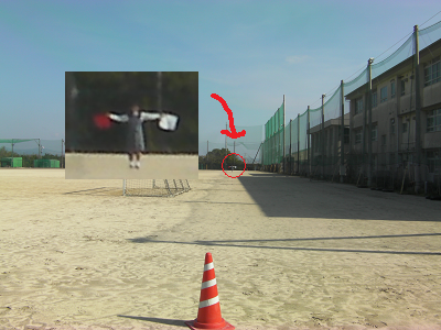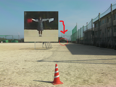 肉眼ではここまでが限界でした。旗の色は見えるのですが動きまで確認できるかどうかは、視力によって変わるかもしれません。