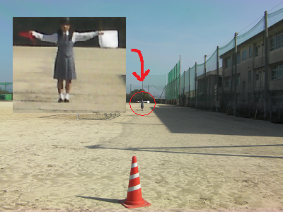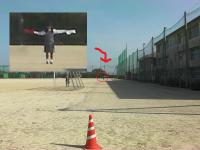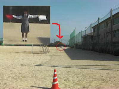 実際、手旗はどこまで確認できるのでしょうか?そこで、実物の手旗を使い実験を行いました。