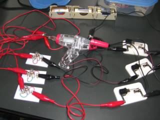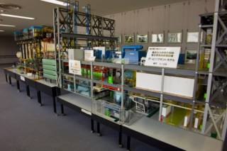 As models,some sets including hand electrical generator and three electric bulbs. You can put on or put off the lights by the switch. The guide told us to wake a team of two persons.The one put any switch on or off. The other must rotate the hand generator so that the all bulbs keep the similar light level. It was more difficult than I expected.When the switch was on or off, the reaistance of the hand generator was modified. Therefore I could not keep the light level. I was so surprised,because Yokohama electric generation plant does control the electrical power to supply tens of thousands homes. |