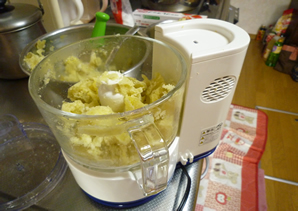 なめらかになるまで混ぜて、 塩を少々いれる。