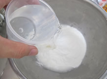 | @粉にお湯を少しずつ入れてこねていく。 |
