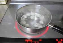 | B鍋に湯を沸かして、だんごをゆでる。 |