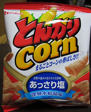 とんがりコーン 名前の通りコーンが素材です。 揚げてあるのでカリッとした食感で、円錐の形が特徴的です。 塩味のさっぱりした飽きない味です。 |