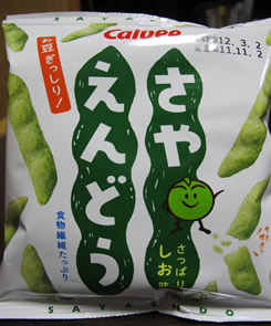 さやえんどう さやえんどう本来の味を生かし、程よい塩味が人気の理由。 食物繊維やビタミンも入っています。本物のさやえんどうのような形が印象的です。 |