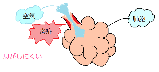 気管支が腫れると、気道が狭くなり、ゼーゼー・ヒューヒュー呼吸が苦しくなります。