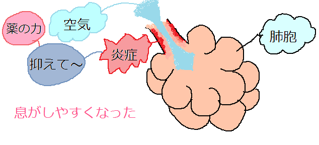 このお薬は炎症をおさえ、気管を広げて呼吸を楽にします。