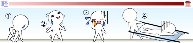 熱中症は主に四つの症状にわけることができます。ここではその症状の違いや特徴について紹介します。 すべて症状は似ていますが、原因は全く違うのでそれぞれ対処法も違います。各症状に合った対処法をできるようにしましょう。 |