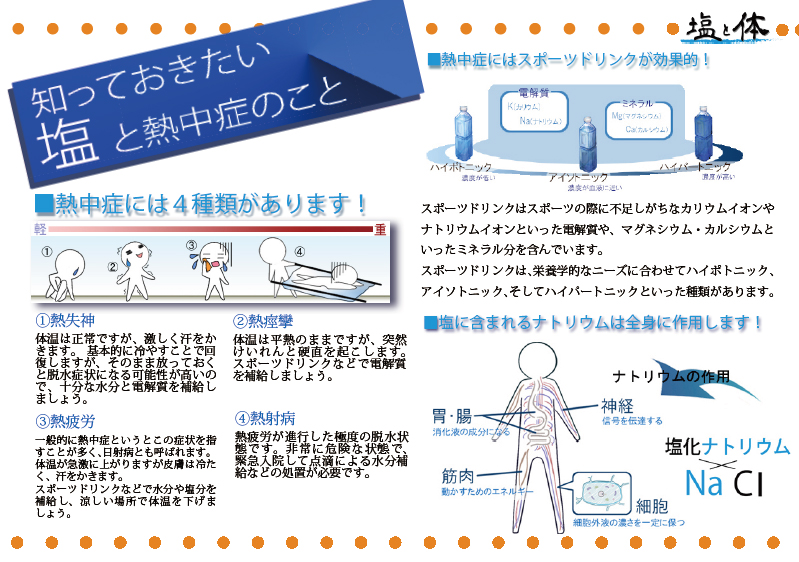 熱中症と塩についてまとめたポスターです、印刷してお使いください!![]() |
