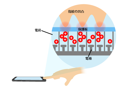 指紋認証には「静電容量方式」が搭載されており、指紋を認証する部分の下には大量の電極が詰められています。指紋の凹凸をセンサーは読み取り、直接触れた凸部の下にある電極の方がたくさんの電荷がたまります。(これは指にかいた汗が電解質のために反応するからである。)この電荷のたまっている電極をマッピングすることで指紋データをとっているのです。