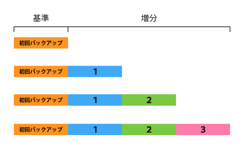 「増分バックアップ」とは、文字通り「増」をバックアップすることです。