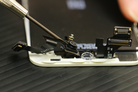 メイン基盤を取り外したら、残されたバイブレーションモーター、インカメラモジュールを取り外しましょう。実際に小型カメラを手に取って観察してみると、「こんな小さいのに写真が撮れるんだ」と感動しました。