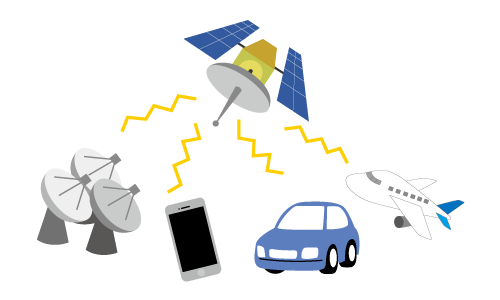 人工衛星は地球の上空約2万kmにある6つの軌道に各4個配備されており合計24個の衛星が回っています。そのためいつどこでもGPS機能を利用して緯度・経度・高度を人工衛星が割り出し、そのデータを位置情報としてスマホに発信し、それをスマホが受信することで位置情報を把握することができています。また、受信する位置情報に生まれる誤差を最小化するために地上に設置されている基地局が電波を発信し、位置情報の補正を行っています。