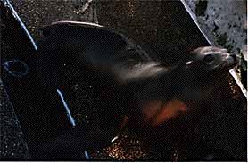 アザラシはひれ足類の動物だが、歩くことができない。アシカと違い、足が魚のように尾びれに近い形をしているからだ。体をくねらせてはって進み、泳ぐときは後足を使って泳ぐ。水の抵抗をなくして泳ぎやすくするため、耳は体の外に出ていない。・アザラシはカモメや白鳥などの海鳥に混じって北海沿岸全域に生息している。砂浜や岩の上で寝そべる様子や、海の上に顔だけ突き出してあたりを見まわす仕草はユーモラスであり、北海沿岸の人々には、ごく身近な動物として親しまれていた。