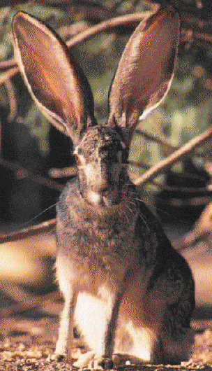 アメリカ西部に住む、耳の長さが20cmに達する野ウサギです。6種類もあり一般にはオグロジャックウサギ(体長:46〜63cm)、オジロジャックウサギ(体長:56〜66cm)、アンテロ−プジャックウサギ(体長:48〜54cm)