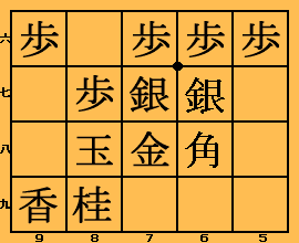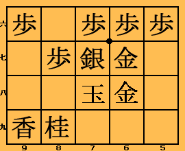 6九の地点をカバーしているぶん金矢倉よりも 優れています。 天野宗歩がよく用いたことから「天野矢倉」と呼ばれたことがあります。 |