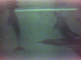 イルカも人間と同じほ乳類です。しかしどうしてイルカは水中で暮らし、長い間潜水していることができるのでしょうか。その秘密は呼吸の仕組みにあります。イルカは人間に比べてとても深い呼吸をします。人間は通常10〜15%の割合で酸素の交換をします。それに対してイルカは80〜90%の割合で酸素の交換が行われるのです。この値は、私達が激しい運動をした後の強くて速い呼吸の量と同じです。イルカは肺に吸った空気の9割近くを利用したくさんの酸素を血液に蓄えておくのです。その働きにより長時間潜水することができるのです。またイルカが深くもぐるためには、高い水圧に耐えることができる肺やろっ骨を持っていなければいけません。人間が普通、潜ることができるのは20m、せいぜい50mが限度です。しかしハンドウイルカなら300m以上潜ることができます。これはイルカの肺はやわらかく、よく伸び縮みし中に空気が残らない状態まで縮むので、高い水圧にも破れることがありません。ろっ骨は他のほ乳類に比べて数が少なく、よく動きます。高い水圧で肺が小さくなっても。ともに動くので折れないのです。またイルカは潜水病にもかかりません。潜水病とは、血液中の酸素などが気体のあわとなり、血管をつまらせる恐い病気です。人間は潜水中、高気圧で空気を絶えず吸うので、血液中に空気が多量にとけこみすぎて、潜水秒を引き起こしますが、イルカは潜水中に空気を吸わないので、血液中に空気がとけこみすぎることがなく、潜水病にもかからないのです。水中で生活するほ乳類はクジラの他にシロクマやラッコ、ジュゴン、オットセイなどがいるが、シロクマやラッコは陸地と完全に縁を切ってはいないし、ジュゴンは水中で一生暮らすが、クジラやイルカほど水中への適応は進んでいません。