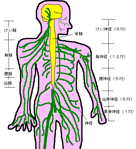 脊髄から31対の脊髄神経が出ていて、手や足や、体の筋肉や関節や、胃、心臓、