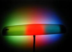 次に、蛍光灯をスクリーンから遠ざけよう。スクリーンに映る光の色はどのように変化するだろうか。