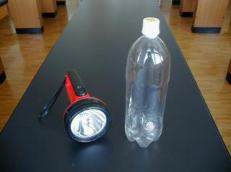 C.部屋を暗くして、写真のようにボトルの底から光をあてる。