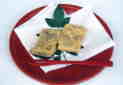 4,適当な大きさに切り分けたくずもちを別の器で、きな粉をまぶしてお皿に盛りつけます。南天の葉など、何か植物の葉を添えますと風情がでて、さらにおいしく召し上がれます。