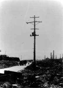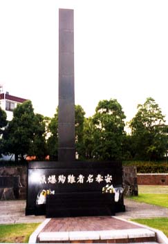 長崎へ投下された原爆は1945年8月9日午前11時2分、この碑の指し示す上空およそ500mで炸裂しました。