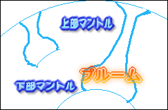 プルームとはマントルの中を上昇するマグマの塊のことで、これが地表のプレートを移動させている力のおおもと、と考えられている。