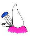 歯と歯ぐきの間は、歯ブラシを斜め45°に