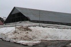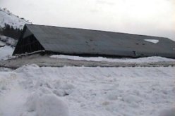 プールの貯蔵庫を作り、間に雪を入れていきます。雪がその上に積もっていく。雪が降らなくなったらその上にカバーを掛けて溶けないようにします。貯蔵庫をおおう雪はその年の気候によって異なりますが、9月中旬まで雪があります。貯蔵庫の中は0,3度です。プールの下に雪解け水をためる貯蔵庫もあり、夏の冷房に使います。