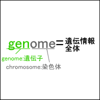このサイトのタイトルにもなっているgenome。この言葉は、比較的新しくできた言葉で、英語ではジーノム、ローマ字読みではゲノムと読みます。 語源は、英語で遺伝子という意味を持つgene(ジーン)の頭三文字と、染色体の意味を持つchromosome(クロモソーム)の後ろの三文字をあわせたものです。 主に遺伝情報全体、一般的な"遺伝子"をさす言葉として使われています。そして、人間のものはヒトゲノム(human genome)といいます。