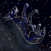 21時南中は6月18日で、正中高度は地平線付近です。さそり座の西どなり、ケンタウルス座との間にあります。特別明るい星はないですが、10個ほどの星が低空のわりに目につきます。古くからある星座で、紀元前300年ごろのギリシャの記録によると、以前から野獣座と呼ばれていたとあります。ケンタウルスの犠牲座とも呼ばれていました。ギリシャ時代に、この動物がなんだったのかは伝わっていませんが、おおかみの姿と言われるようになったのは、ルネッサンス時代になってからのようです。トレミー48星座の一つです。