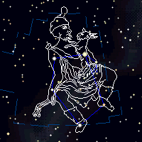 21時南中は1月31日で、正中高度は天頂付近です。頭上高く流れる冬の天の川に浸っている、1等星カペラと五角形の形に並んだ星々が目印の星座です。カペラは、21個ある1等星の中では最も北に位置し、日本ではほぼ一年中見ることができます。バビロニア時代に誕生し、当時は老人と羊の姿の星座と見られていました。1等星カペラは、天神アヌ、または最高神マルドゥクの星として崇められたこともあります。トレミー48星座の一つです。双眼鏡を向けると、星座全体が微光星で覆われていてたいへん美しい星座です。