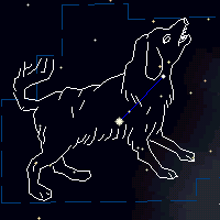 21時南中は2月24日で、正中高度は60°です。冬の天の川をはさんでオリオン座と反対側にある、1等星プロキオンだけが目立つ星座です。オリオン座のベテルギウス、おおいぬ座のシリウスと「冬の大三角」を作ります。紀元前1200年ごろのフェニキアではすでに知られていた星座ですが、このころはおおいぬ座とは関係なく海の犬座と呼ばれていました。紀元前300年ごろのギリシャの本に、初めてこいぬ座の名が出てきます。おおいぬ座とともに、オリオンに連れられた猟犬の姿です。トレミー48星座の一つです。
