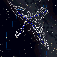 21時南中は8月26日で、正中高度は60°です。1等星アルタイルをはさんで、ほぼ一直線に並ぶ三つの星が目印です。アルタイルは、こと座のベガと天の川をはさんで向かい合い、夏の夜空では2番目に明るく輝いています。わし座のアルタイル、こと座のベガ、はくちょう座のデネブを結んでできる大きな二等辺三角形を「夏の大三角」といいます。古代バビロニア時代にはすでに知られていた古い星座の一つで、バビロニア時代には、神がワシを抱いた姿で表わされていました。トレミー48星座の一つです。