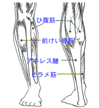 つま先立ち、歩く、走る、ジャンプする、キックするなどの動作を行うときに大腿部(だいたいぶ)、臀部(でんぶ)の筋肉と連動して、下腿部(かたいぶ)の筋肉が働きます。