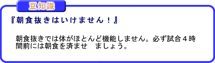 ○試合の3〜4時間前には必ず糖質を摂取すること! ○同時にビタミンB1、B2、Cも摂取すること!