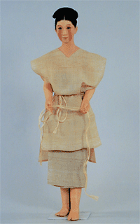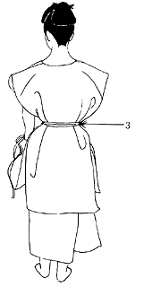 4 木綿(ゆふ)[麻の緒]を手にしている