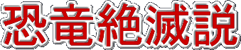 直径10kmの巨大隕石がメキシコのユカタン半島に落下し、ものすごい熱により、森が燃え上がり、衝撃により大津波が発生した。そして、飛び散った水蒸気やちりが地球全体をおおい、日光をさえぎり気温が低下し、植物が育たなくなったため、エサ不足と寒さで次々に死んでいったという説。地球にないはずのイリジウムという金属が、この時代に大量発見された。 |