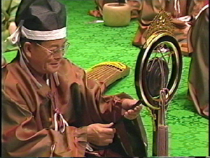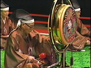 雅楽では、ただ一つ、金属製の楽器です。「鉦鼓」は「太鼓」と同じように、管絃や舞楽で用いられます。