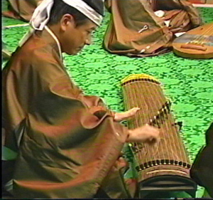 「楽箏」もリズム楽器で、1つの小節の中でのリズムの流れをアルペジオ的な奏法で提示します。