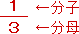 下に書いてある3を分母、上に書いてある1を分子といいます。