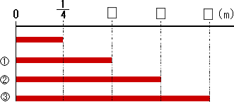 <前のページで、1mを3等分したうちの1つ分はは3分の1mだということを説明しました。