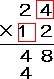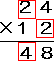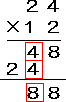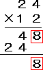 | (2) | 一の位どうしでかけざんをします。>> 2×4=8 |