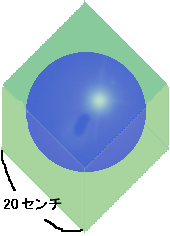上の画像のように、一辺が20センチのま四角な箱に、きちんと入っている球があります。