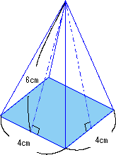 この公式に当てはめて、上の角錐の面積を求めると、 |