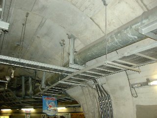 ・トンネル内部は直径の3〜5倍の薬剤を岩盤に浸透させて、固め補強をしています。![]() さらに30〜40cmの厚さでコンクリートを吹き付けて壁を作っています。 ・これは開業10周年を記念して設置されたアートメモリアルフォトボードです。 ![]() 原料は青函トンネルを掘った時に出た土と岐阜県の多治見の粘土を混ぜています。 ・海底駅は定点と呼ばれる避難所を兼ねています。 ここは海面下145mで上下の高さは海底と同じで水平の位置は海と陸の境目です。 ![]() ・海底駅の天井にはいろいろなケーブル類が張り巡らされています。 ・トンネル内には海水があちこちからわき出ており、トンネル全体で1分間に24tぐらい(!)です。 耳を澄ませば水が流れる音が聞こえてきます。 ![]() ・この水をポンプで排水していますが、トンネル内の15000本もの蛍光灯の分も含めて、電気代が1日230万円、月にすると7000万円(!)もかかるそうです。 まだまだ続きます。 【 次へ 】