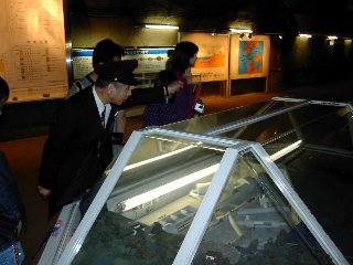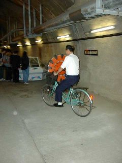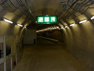 ![]() ・列車火災の時はトンネル上部、ホームの下、レール間にスプリンクラーがあり毎分7tの水が放出されます。 ・万一の火災の場合には消化隊が地上からケーブルカーで降りてきます。 ![]() 現場到着まで9分かかるそうです。 ![]() ・ここが緊急時の避難所です。 ![]() ・何と1000人も収容出来るそうです。 ・海底駅職員の交通手段として、自転車(!)が活躍していました。 ![]() ・海底駅内にはトンネルを紹介するコーナーもありました。 ![]() ・北海道福島町では四季を問わず一定の温度(15℃前後)の吉岡海底駅の排水を利用して、”ひらめ”の養殖をしているそうです。 続いては、作業に使われた道具類の紹介です。 【 次へ 】