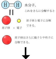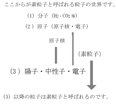 | 素粒子説明図 | 原子核に含まれる電子も素粒子にはいります。そして、陽子、中性子、中間子も素粒子です。 |