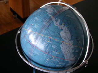※写真は地球儀ではありません。天体が描かれたもので、天球儀といいます。