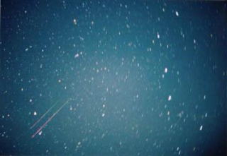 その時の流星経路を,星図に記入し,流星経路を流れた方向とは逆方向に延長していくと,不思議なことにある一点に集中します。
