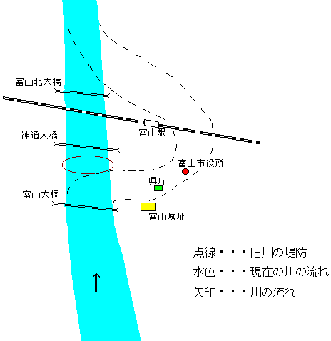 神通川は暴れ川としても有名で、江戸時代までは洪水のたびに